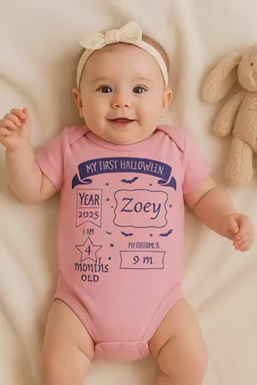 Dress your little pumpkin in this adorable My First Halloween baby bodysuit — the perfect outfit for your baby's very first spooky season. Available in pink or blue, with the option to add your child's name, this outfit is not just clothing, but a keepsake you'll treasure for years. Soft cotton fabric, safe inks, and thoughtful design make it ideal for photoshoots, trick-or-treats, and family gatherings.