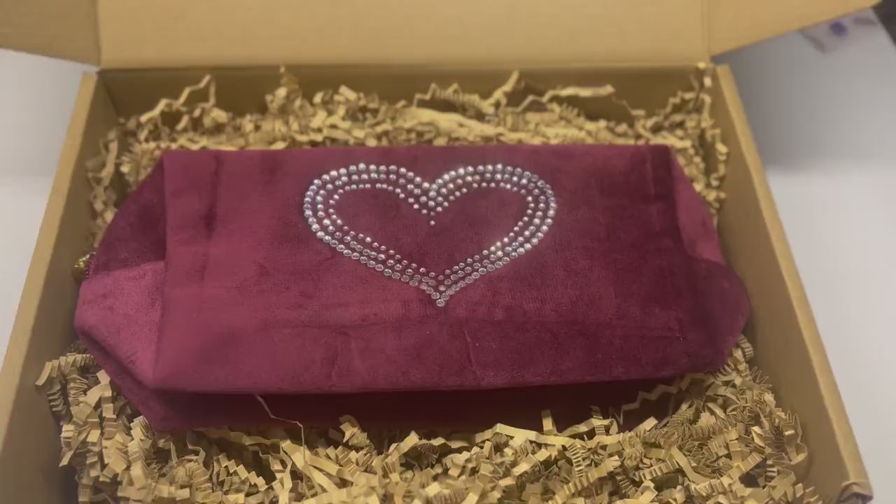 A cute makeup bag gift for your closest and dearest person to express your love to your mother. The cosmetic bag with rhinestones in the rhinestones of a heart will be packed in a box, wrapped in paper (you can choose the color of the wrapper: silver, burgundy,blue) and tied with a bow with an inscription. The color of the cosmetic bag (burgundy, gray, blue) and the color of the wrapper can be chosen. You can also indicate the inscription on the box and/or on the bow.