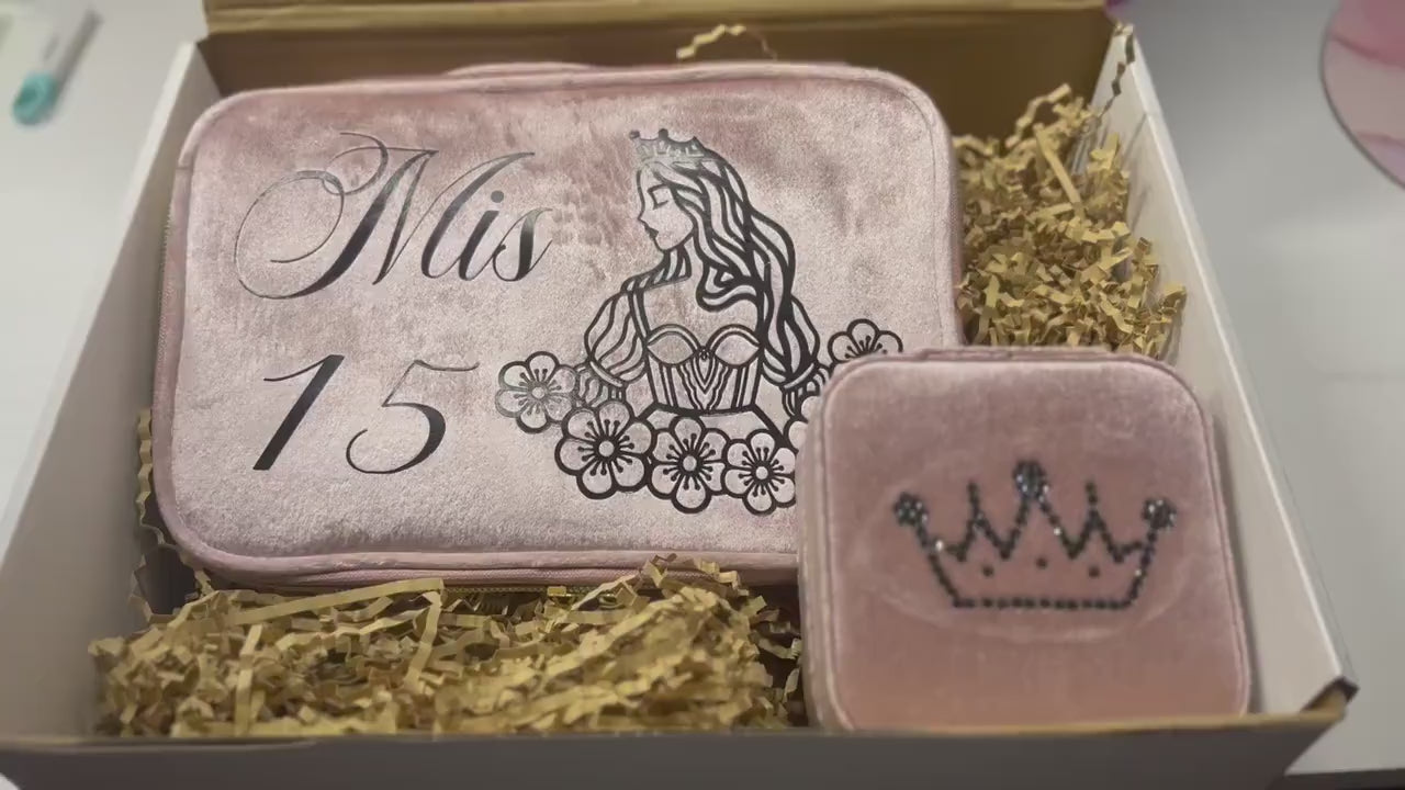 Personalized Makeup Bag for Mis 15, Bridesmaid Cosmetic Bag and jewelry box, Custom Makeup Bag, Bridesmaid Proposal, Bridesmaid Gift
